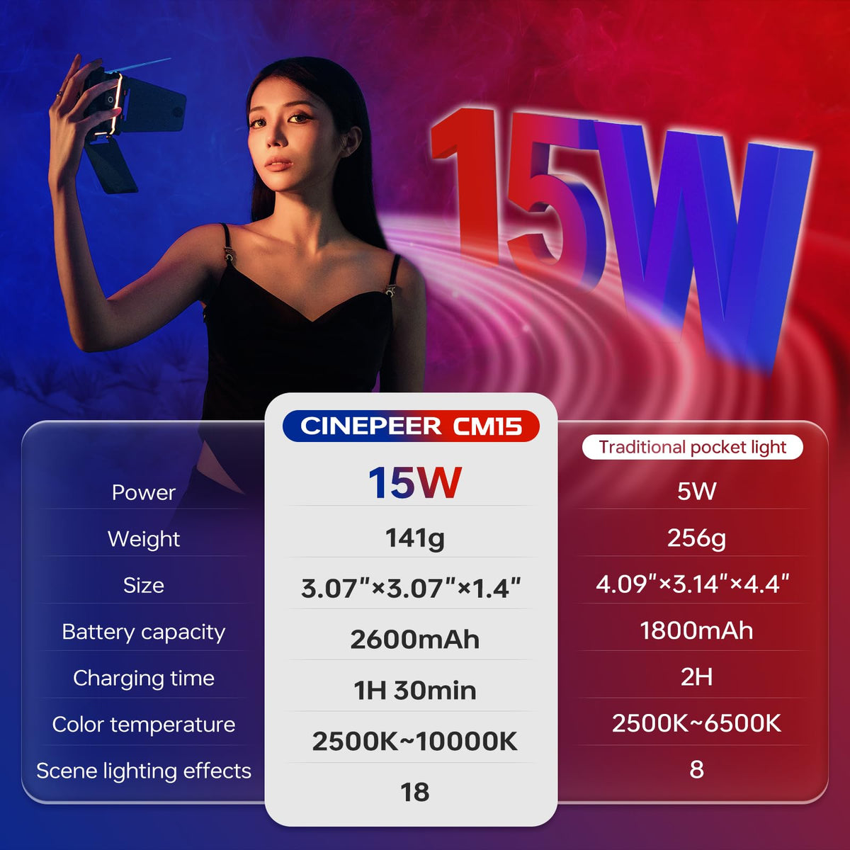 Zhiyun Cinepeer Cm15 15W Camera Light Portable Video Light