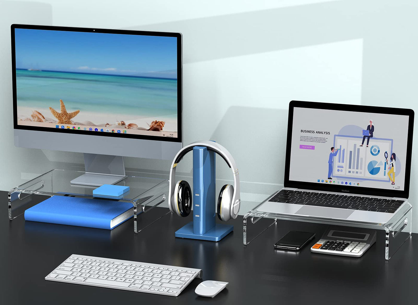 Zimilar 2 Pack Monitor Stand Riser, Acrylic Monitor Stand For Computer, Laptop, Printer, Notebook, Premium Clear Laptop Stand Ac