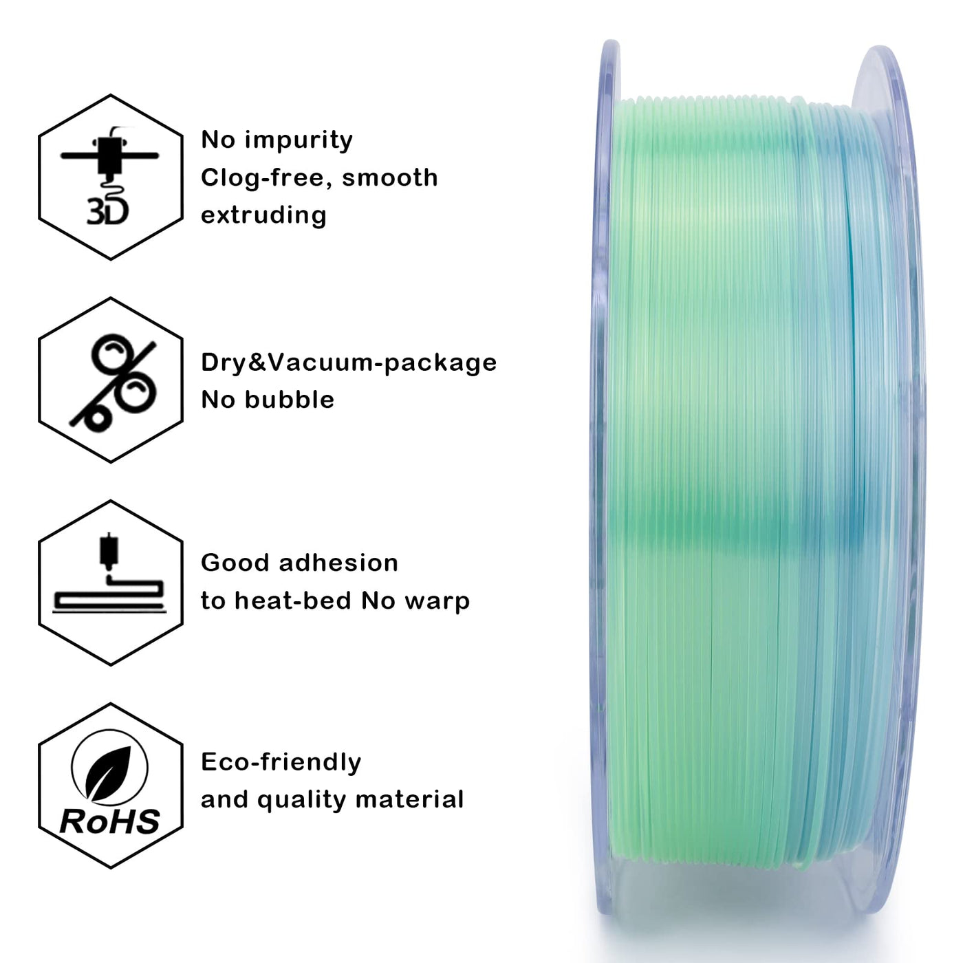Ziro 3D Printer Filament, Translucent Pla Filament 1.75Mm, Semi-Transparent Multicolor Rainbow Pla, Colorful 3D Printing Material, 1Kg/2.2Lbs Spool, Season Series - Summer