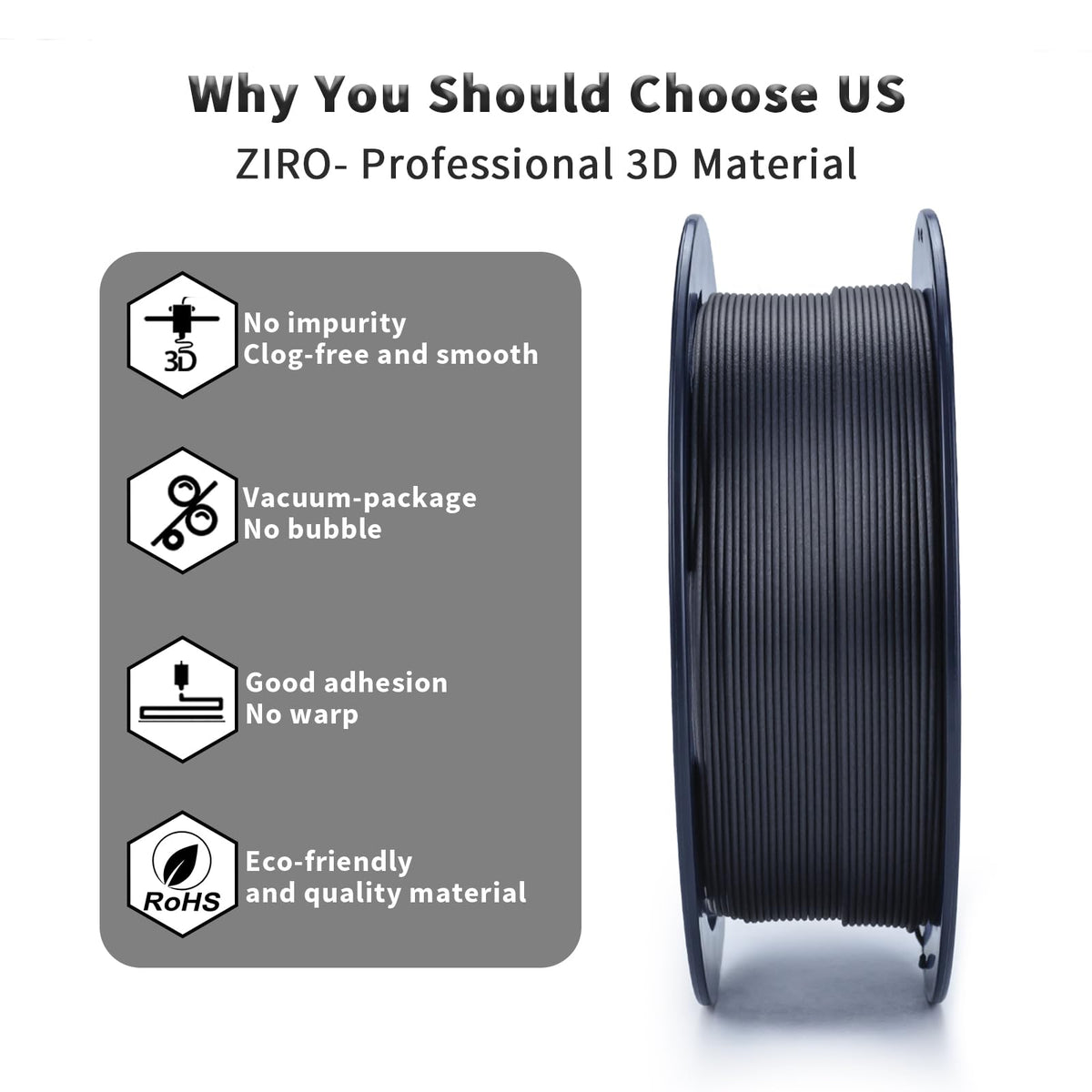 Ziro Carbon Fiber Pla Filament 1.75Mm, Cf Pla 3D Printer Filament, Reinforced Material 0.8Kg Spool, 15% Carbon Fiber Contained,