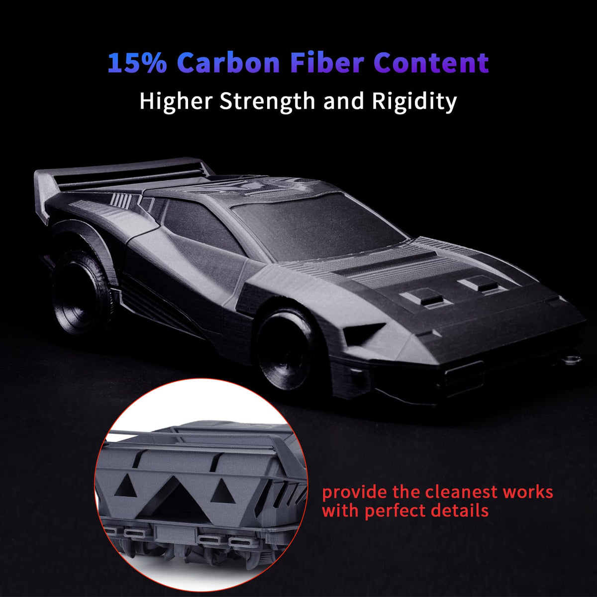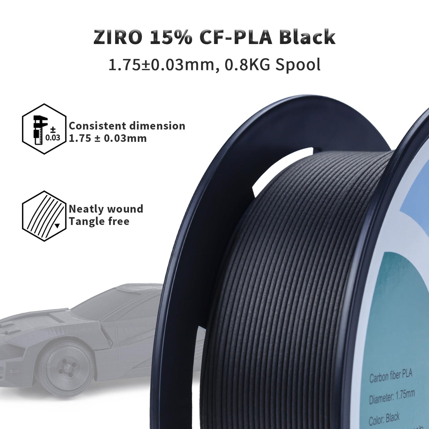 Ziro Carbon Fiber Pla Filament 1.75Mm, Cf Pla 3D Printer Filament, Reinforced Material 0.8Kg Spool, 15% Carbon Fiber Contained, Fits For Almost All Fdm 3D Printers, 1.76Lbs, Black