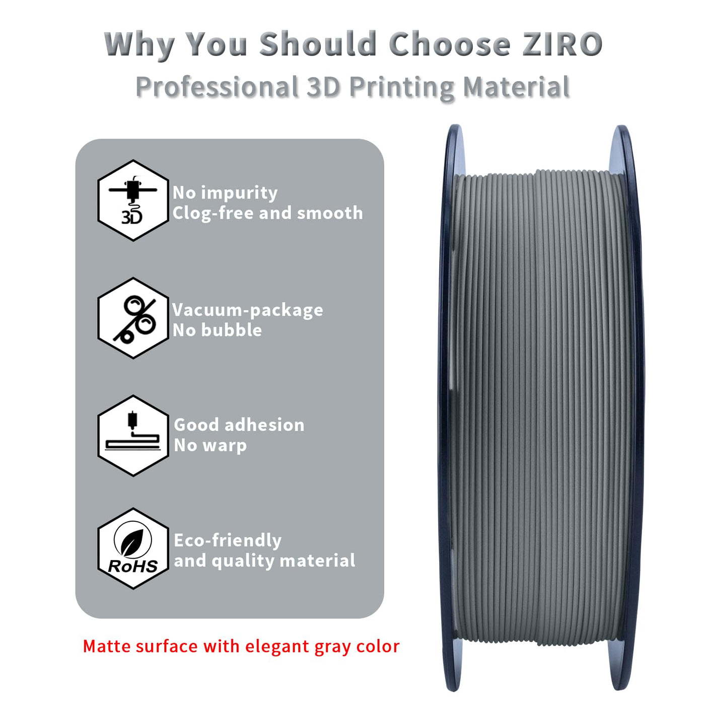 Ziro Matte Pla Filament] The Fantastic Frosted Texture Make Your Artworks Less Plastic-Feeling, More Advanced Beauty Hassle-Free Printing, No Bubble, Tangle-Free, Clog-Free, As Easy Printing As Regular Pla Filament Recommended Print Settings] Extrusionnozzle Temperature 190-220, Heat Bed 50-70, Print Speed 30-70Mms Dimensional Accuracy And Consistency] Diameter Tolerance At +-003Mm, Net Weight 1Kg (22Lbs) Filament, Compatible With Most Fdm 3D Printers Packaging] Vacuum Sealed With Desiccant An Extra Reseal Bag For Storing Used Filament, A 5M Cleaning Filament, A 5M Sample Filament Coil After-Sales Service] We Are Always Ready To Help Any Questions, Please Feel Free To Contact Us, We Will Offer You A Satisfactory Solution