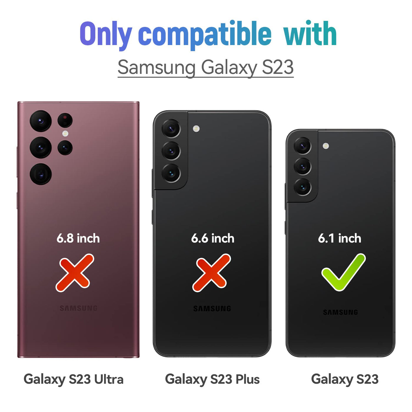 Compatible Models]: Only Compatible With Samsung Galaxy S23 5G , Not Compatible With Other Devices Full Tection]: Heavy-Duty Shock-Of Cover, 360 Degree Full Body Tection Drop Tection, Scratch And Dust Tection, Shock Resistant Tect Your S23 Phone From Daily Drops And Stains Precise Drilling]:All Buttons And Interfaces Are User-Friendly To Avoid Frequent Disassembly And Assembly The Perfect Case For Speakers, Camera And Charging Hole, Giving You Easy Access To All Features, Easy Installation And Removal Scratch Tection]: Full Coverage Ensures That Every Inch Of Your S23 Phone Will Not Be Worn Out Multi-Layer Tection]: Vide The Best Tection For Your S23 Samsung Cell Phone, Soft Tpu Shell + Integrated Shock Absorption Technology + Super Hard Polycarbonate Back Panel Structure All-Round Tection For Your Phone