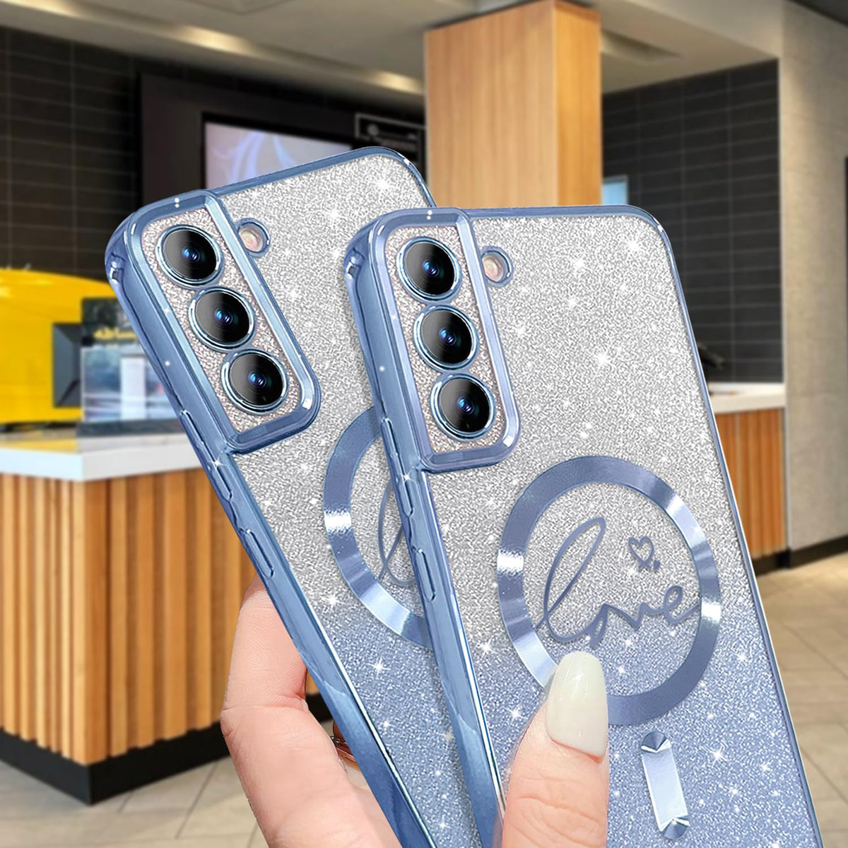 Zonrw For Samsung Galaxy S22 Case Magnetic,For Women Girl Soft Cute Luxury Love Heart Plating Bling Gradient Glitter Phone Case