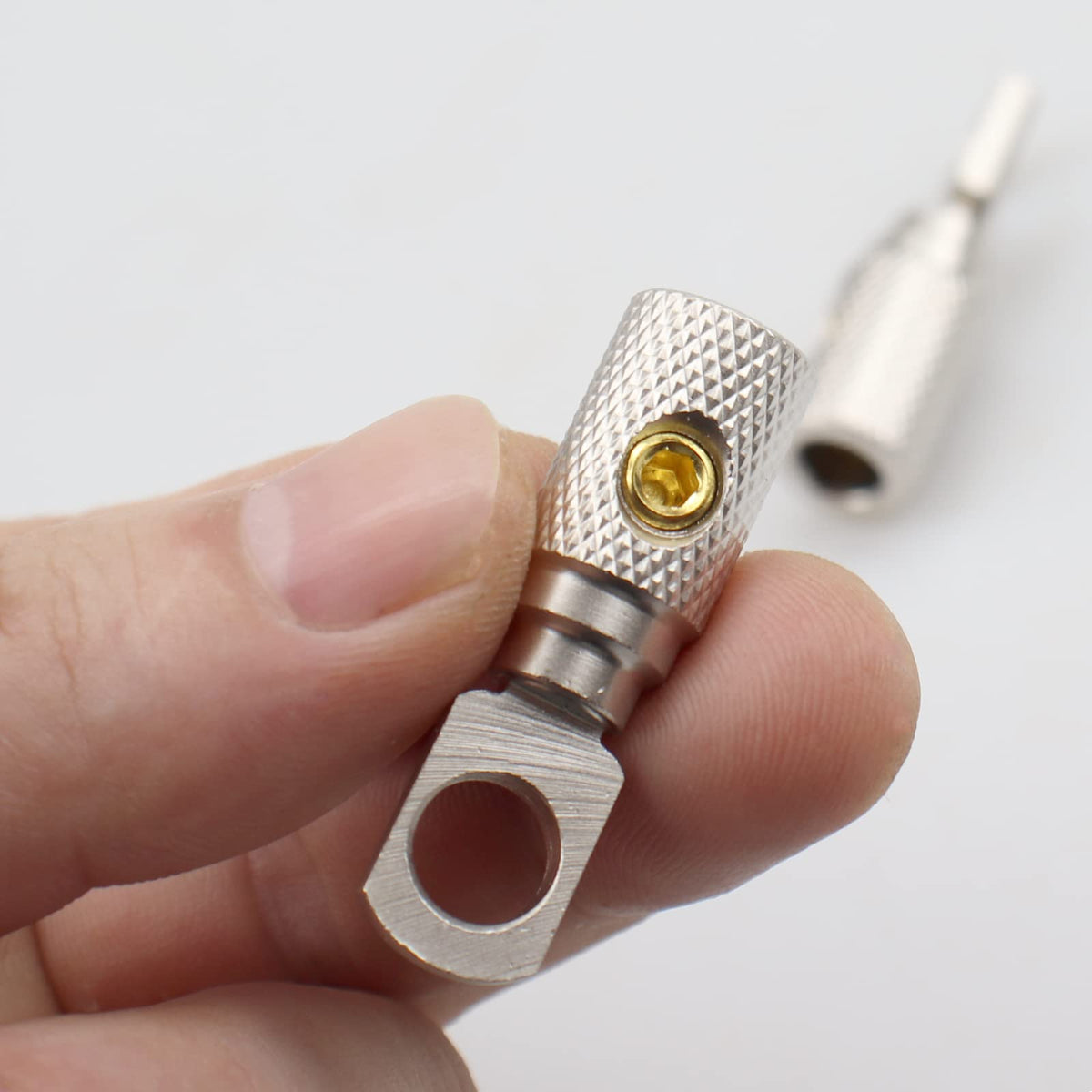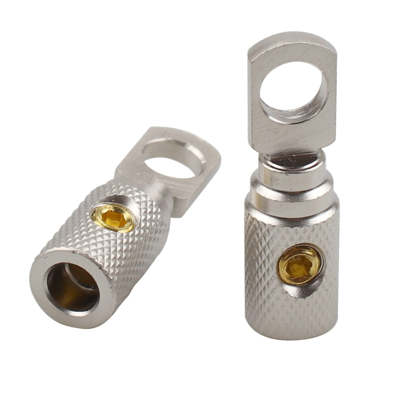 Features: This Product Is A 8 Gauge To 10 Gauge Reducer. Made Of Brass With Nickel Plated, Durable And Intends For Long Service Life. Easy To Install, No Crimping Required, Screw Clamping. Suitable For Power Supply Or Ground. Comes With Screw To Ensure Tight Connection. Flat Pin Connector For Amplifier Input. Note: Please Allow 3-5Mm Differences Due To Manual Measurement. Check The Size Carefully Before Purchasing. Package Content: 2 X Wire Reducer