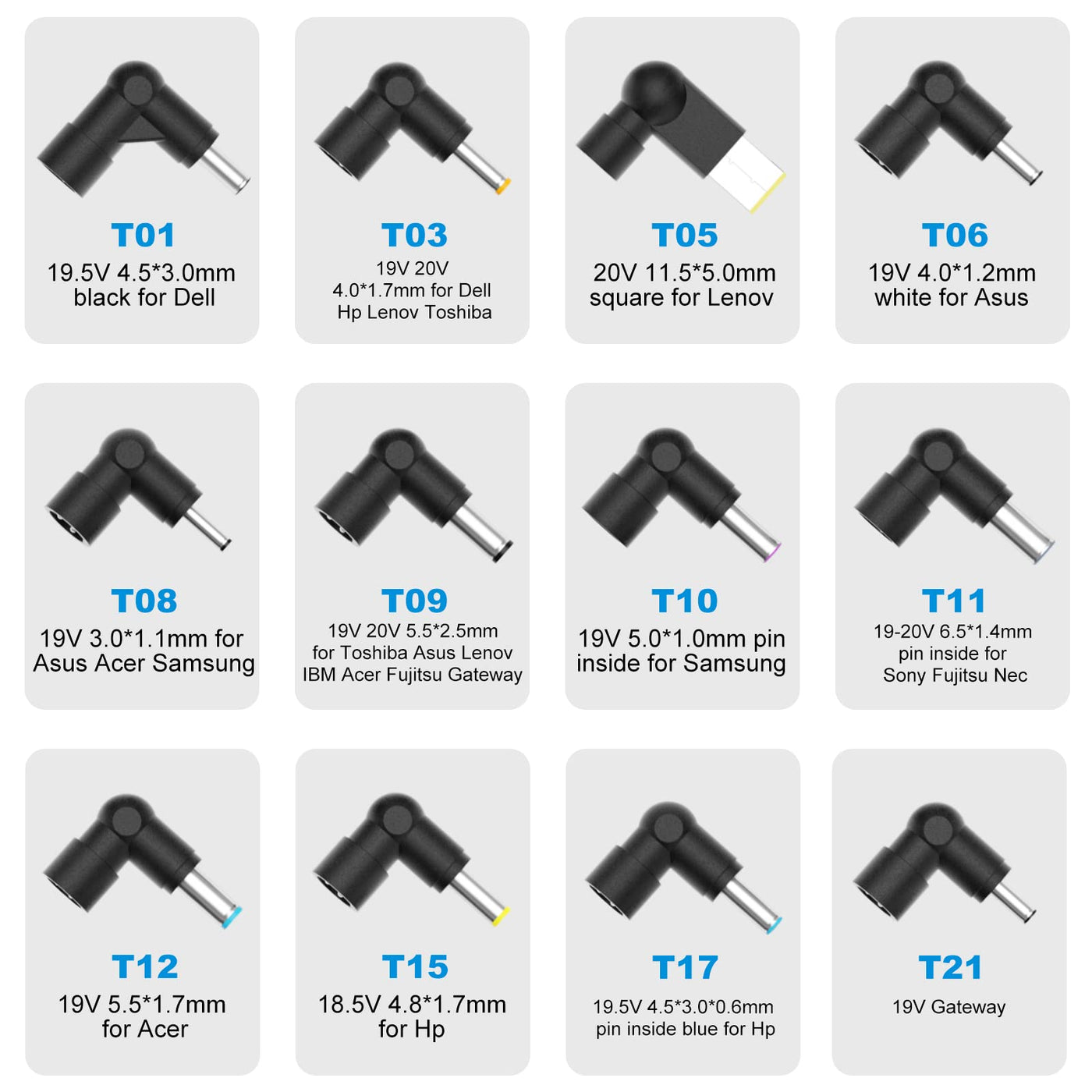 Zozo Universal Laptop Charger 45W Power Adapter For Dell Hp Samsung Sony Asus Acer Toshiba Fujitsu Delta Nec Liteon And More Chromebook Ultrabook Laptop Computer Incompatible With 65W 90W Or 12V Laptop Specifications: Ac Input : 100240V 5060Hz Output Voltage: Dc 185V19V195V20V Max Power: 45W Dimension Of Plugs T01: 195V 45Mm Black Replacing Dell Notebook Computer Chargert03: 19V 20V 40Mm Replacing Dell Hp Toshiba Lenov Laptop Ac Adapter Cord Charger T05: 20V 115 Square Replacing Lenovo Laptop Power Adapter T06: 19V 40Mm White Replacing Asus Laptop Charger Adapter T08: 19V 30Mm Replacing Asus Acer Samsung Laptop Ac Dc Adaptert09: 19V 20V 55*25Mm Replacing Toshiba Asus Len Acer Fujitsu Computer Notebook Charger Adapter T10: 19V 50*10Mm Pin Inside Replacing Samsung Laptop Power Supply T11: 19-20V 65Mm Pin Inside Replacing Sony Fujitsu Nec Laptop Power Adapter T12: 19V 55*17Mm Replacing Acer Laptop Charger Adaptert15: 185V 48Mm Replacing Hp Laptop Power Cord Chargert17: 195V 45*30*06Mm Pin Inside Blue Replacing Hp Laptop Notebook Computer Charger