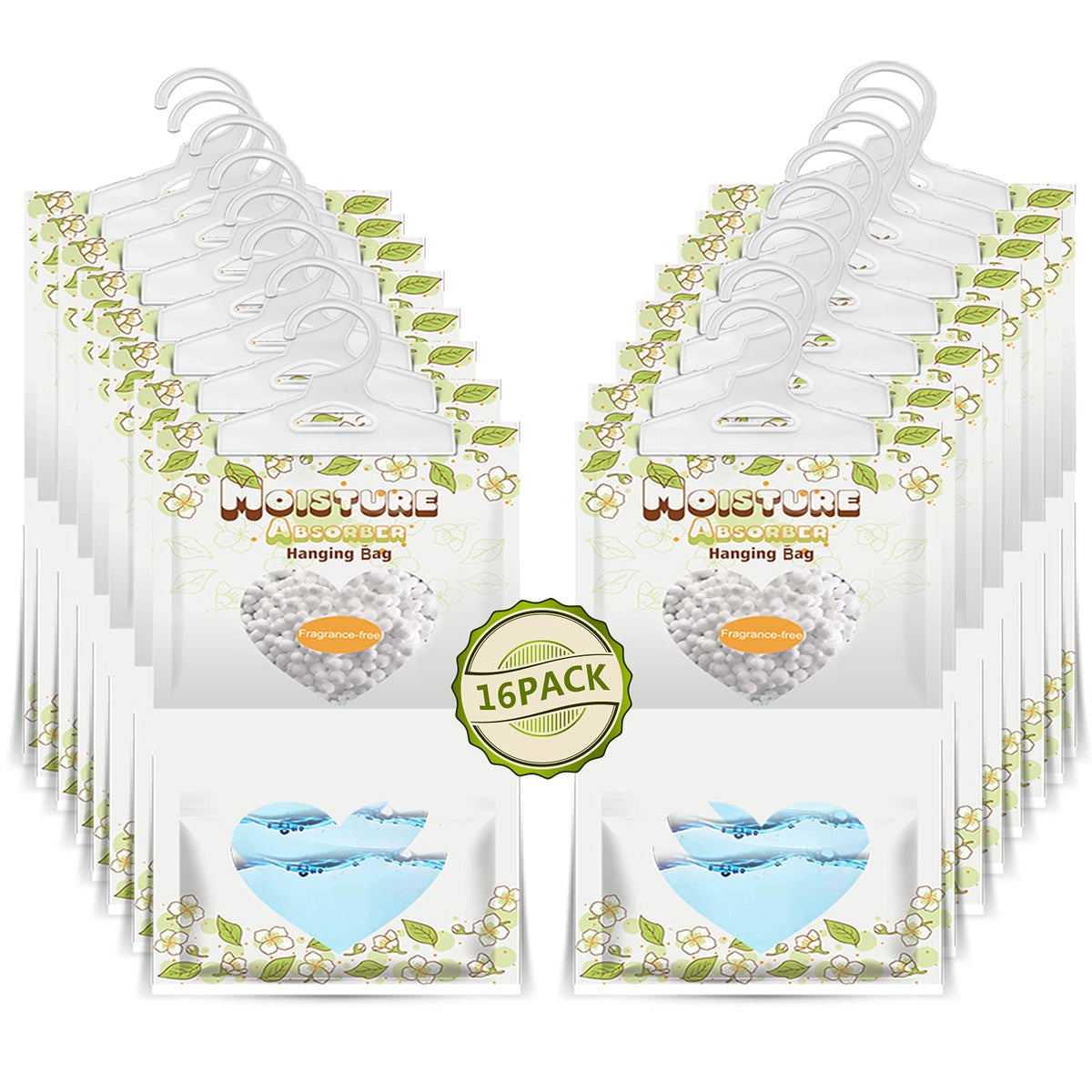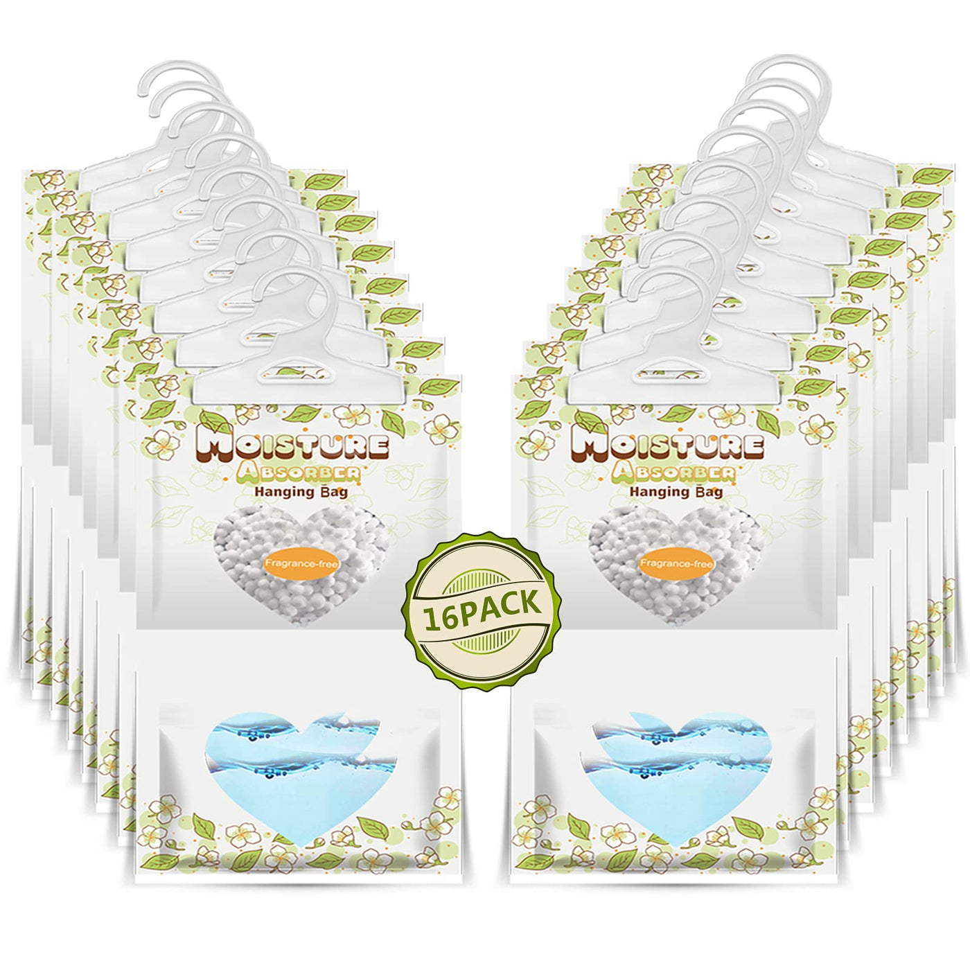 Zspeng 16 Pack Moisture Absorber Hanging Bags,220G/Pack Fagrance Free Moisture Bag,Hanging Closet Dehumidifier Bags, Remove Damp