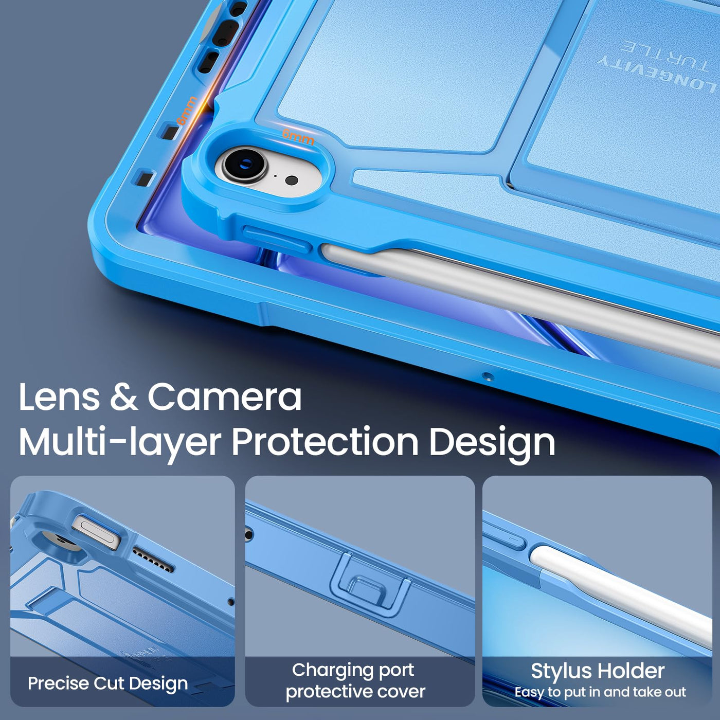 Ztotop Case For Ipad Air 6Th Generation 11 Inch M2 2024, Ipad Air 5Th/4Th Gen 10.9 Inch 2022/2020&Ipad Pro 11 2018 1St,Built-In Screen Protector,Shockproof Cover With Pencil Holder + Kickstand-Blue