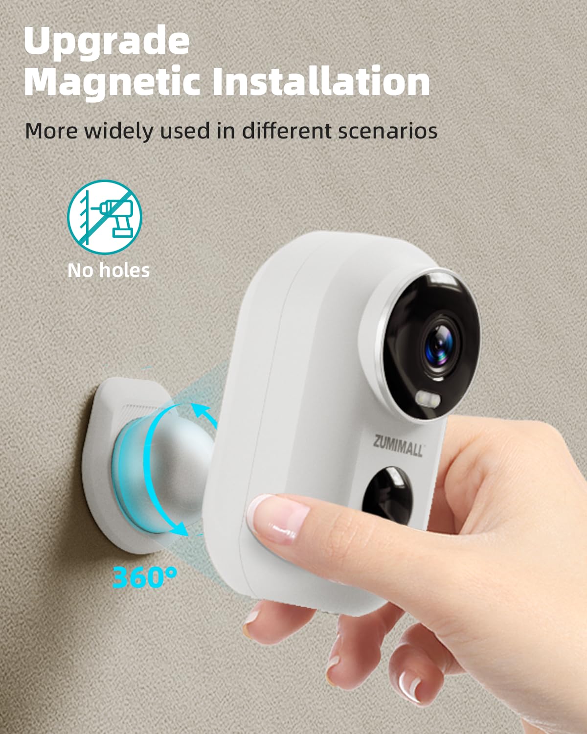 Zumimall Security Cameras Wireless Outdoor With Magnetic Mount, 2K Outdoor Camera Wireless Battery Powered, 2.4G Wifi Cameras Fo