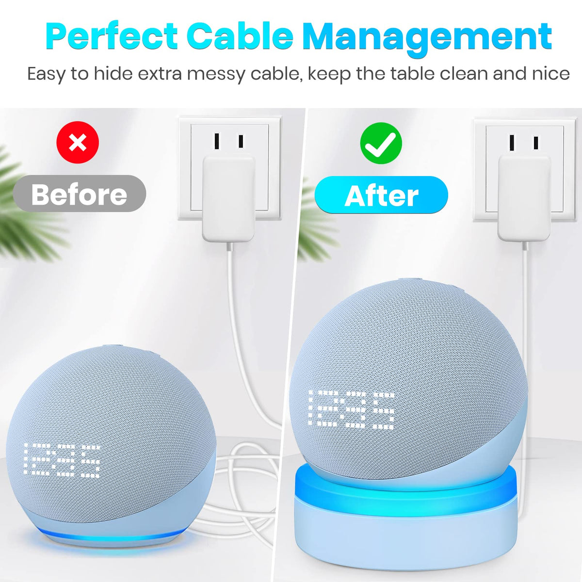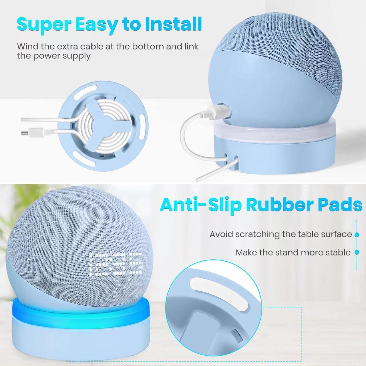 Smart Table Stand: Desktop Holder For Echo Dot 4Th&5Th Generation(2022 Release) (Device Is Not Included), But Not For Echo 4Th Gen With Premium Sound. | Make The Light More Noticeable: The Translucent Light Guide And Built-In Reflection Sheet Make Your Dot'S Notification Light More Visual, More Uniform, And More Beautiful(Better Than The Many Others). | Excellent Cable Management: The Built-In Cord Storage Allows You To Easily Hide The Extra Messy Cord At The Bottom, And Keeps The Desktop Neat. | Easy To Use: No Drilling Or Screwing, Just Need To Wind The Excess Cable In The Stand And Connect The Power Supply. You Can Conveniently Move It To Anywhere You Want And Easily Adjust The Hidden Power Cable Length According To The Fact-In-Use Condition. | Compact And Sturdy: Made Of Premium Abs, Small Sizes And Lightweight, And Lovely Profiles Perfectly Fit For Echo Dot 4 And Echo Dot 5 Smart Speakers. The Bottom Non-Slip Rubber Pads Will Maintain The Bracket More Stably On The Table And Avoid Scratching The Surface Of The Touch.