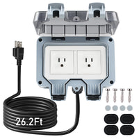 Zuyiyi Outdoor Power Outlet With 26.3Ft Extension Cord, Double Plug Outlet Extender, Weatherproof Waterproof Ip66 Outdoor Electr