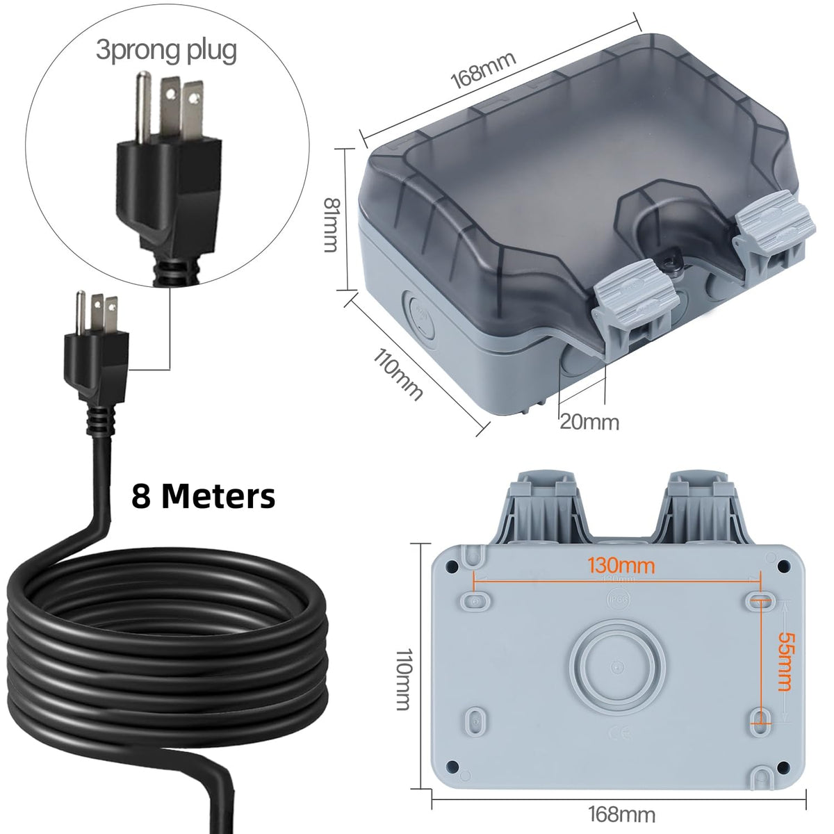 Q: Is the ZUYIYI Outdoor Power Outlet Box suitable for all weather conditions?A: Yes, the ZUYIYI Outdoor Power Outlet Box is designed to withstand various weather conditions, thanks to its IP66 waterproof rating and robust construction. This makes it ideal for outdoor use in gardens, patios, and other exposed areas.