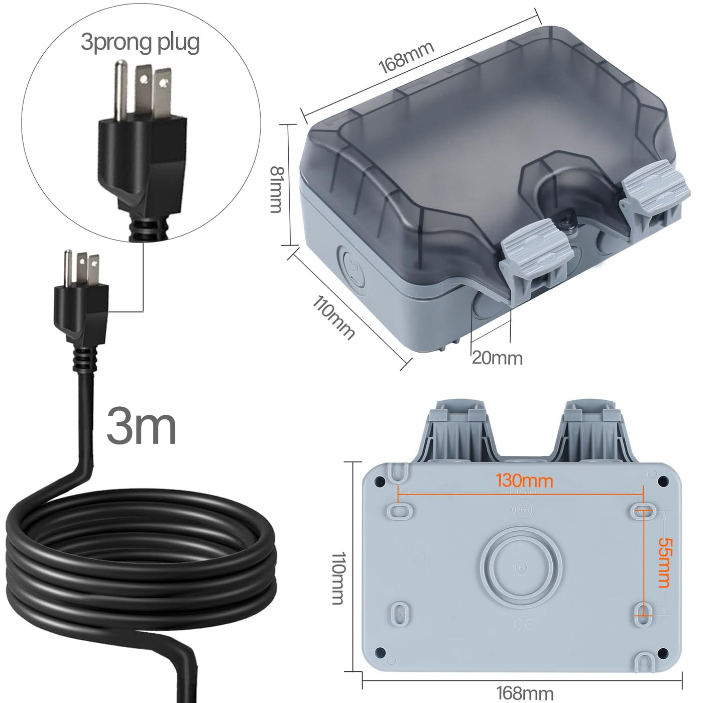 Zuyiyi Outdoor Power Outlet With 9.8Ft Extension Cord, Double Plug Outlet Extender, Weatherproof Waterproof Ip66 Outdoor Electri