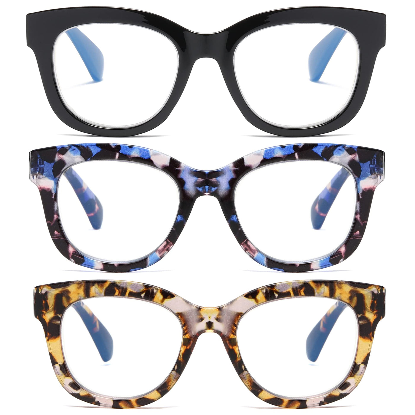 Zxyoo Oversized Reading Glasses For Women,3 Pack Blue Light Blocking Computer Spring Hinge Readers(Blackviolet Leopardy Leopard3