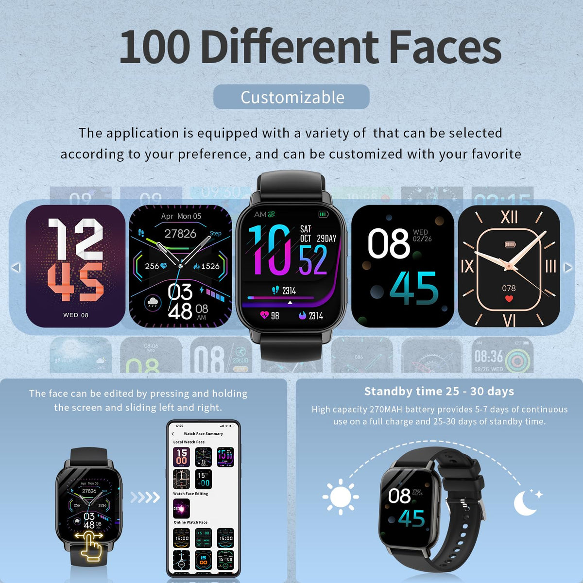 Zyvicxfj Smart Watch 1.85 Large Screen For Men And Women, Bluetooth 5.4 With Call Function Pedometer Wristwatch Sports Watch